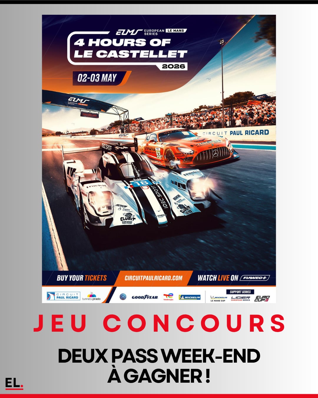 Tentez de gagner deux pass week-end à l’occasion des 4 Hours of Le Castellet (ELMS) les 2 et 3 mai 2026.