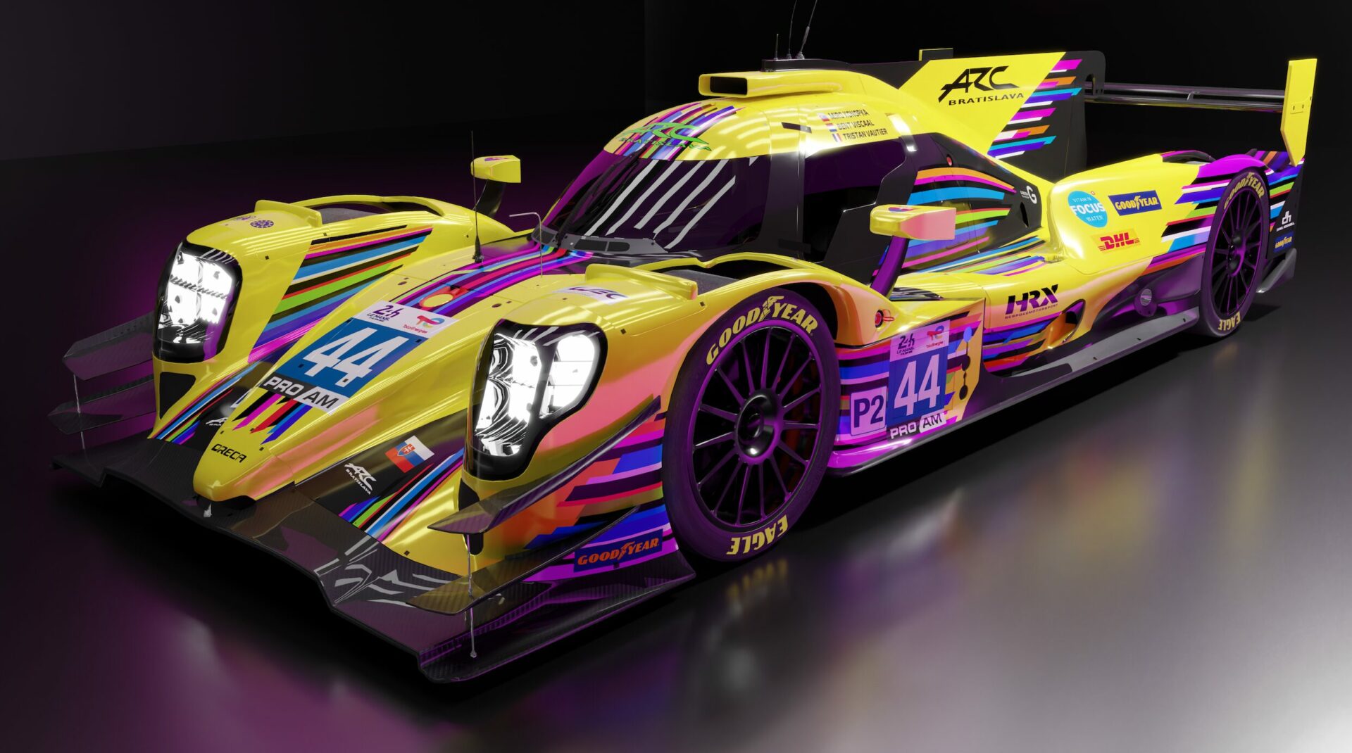 « Mon premier design a été avec Arc Bratislava. J’ai proposé mes services à Michaela Dorcikova, son team manager en lui proposant une ébauche d’ « art car ». Elle l’a adorée et s’est ensuite entendue avec Miro Konopka (le patron d’Arc Bratislava) pour l’utiliser sur leur voiture des 24 Heures du Mans 2022. Le jaune et les bandes colorées ont été leur marque de fabrique pendant des années… J’y ai vu une opportunité pour rafraichir ce look. »
