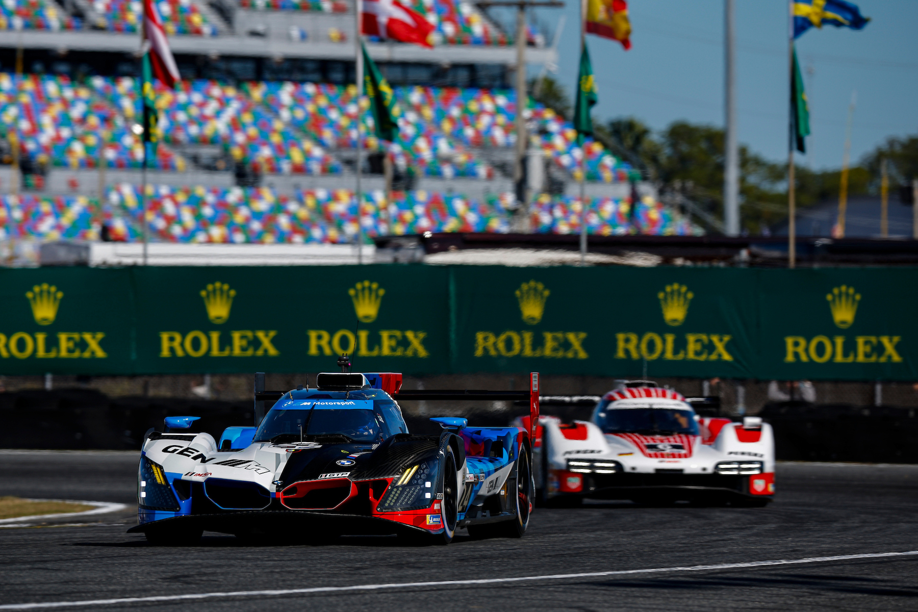 La course est restée sous contrôle de Porsche jusque dans la nuit, malgré une Acura n°93 longtemps dans le sillage avant de perdre une roue lors d’un arrêt et une Cadillac n°10 contrainte à l’abandon, en fin de course, après une défaillance mécanique suivie d’un incendie. La longue neutralisation pour brouillard (6 h30, un record) a rebattu les cartes dans le dernier tiers de course, permettant à BMW de prendre momentanément les commandes avec la M Hybrid V8 n°25. Mais, dans les heures décisives, Porsche a repris la main grâce à son rythme supérieur en conditions plus chaudes.